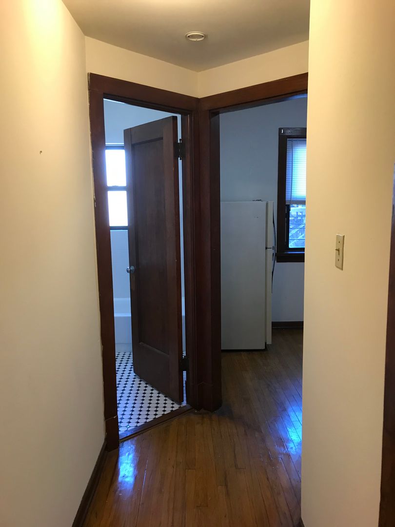 The apartment has hardwood floors throughout with plenty of natural light from large bay windows. The unit contains a combination shower/bath tub with a separate kitchen area. The building is pet friendly with laundry located on site.